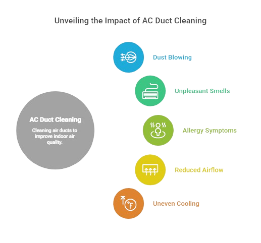 Over time, dirty ducts can affect both comfort and air quality. Common issues include: