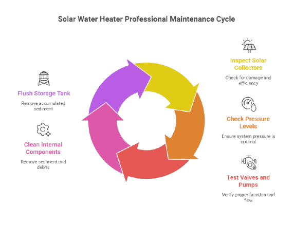 Without regular care, dust buildup, sediment, and minor mechanical issues can reduce the system’s performance. Routine maintenance helps ensure your solar water heater continues to deliver reliable hot water throughout the year.
